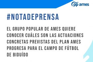 El Grupo Popular de Ames quiere conocer cuáles son las actuaciones concretas previstas del Plan Ames Progresa para el campo de fútbol de Biduído